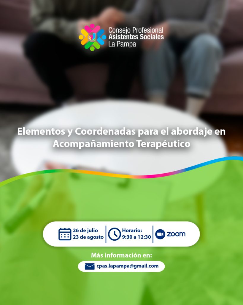 📢 Desde el Consejo Profesional, invitamos a participar del Curso de Actualización: “Elementos y Coordenadas para el abordaje en Acompañamiento Terapéutico”.🧠📘 Una propuesta formativa a cargo del Lic. Juan Pablo Gueglio, dirigida a estudiantes, Acompañantes Terapéuticos, Trabajadores Sociales y profesiones afines.
