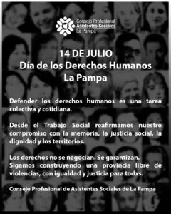 Día de los Derechos Humanos: una construcción colectiva desde el Trabajo Social En el marco del Día de los Derechos Humanos, desde el Consejo Profesional de Asistentes Sociales de La Pampa queremos reafirmar públicamente nuestro compromiso con una perspectiva de trabajo profesional centrada en la memoria, la dignidad, la justicia …